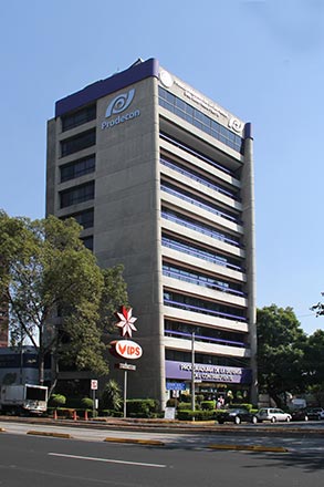 Corporate office building and commercial space on a full block front, designed by Architect Pedro Ramírez Vázquez, developed in 10 levels and 4 parking basements with a land area of 19,375 SF and a leasable area of 48,438 SF, approximately.