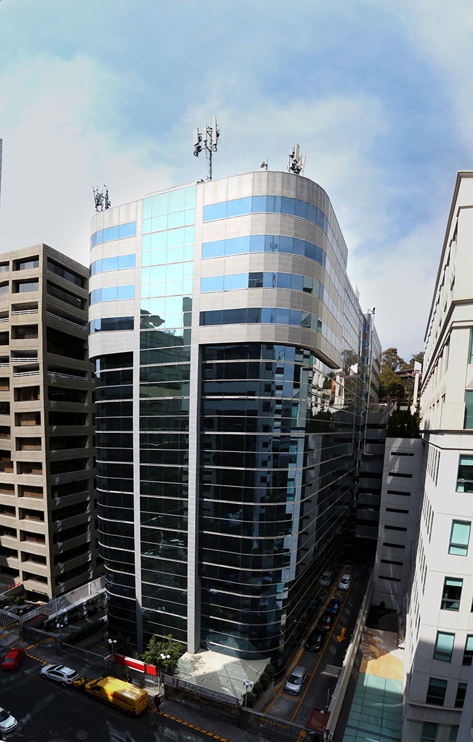 Edificio de oficinas corporativas con locales en Planta Baja, desarrollado en 15 niveles. Con una superficie de terreno de 3,000 m2 y una superficie rentable de 6,000 m2
