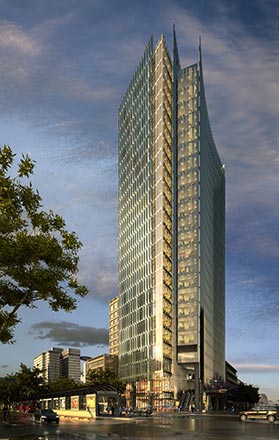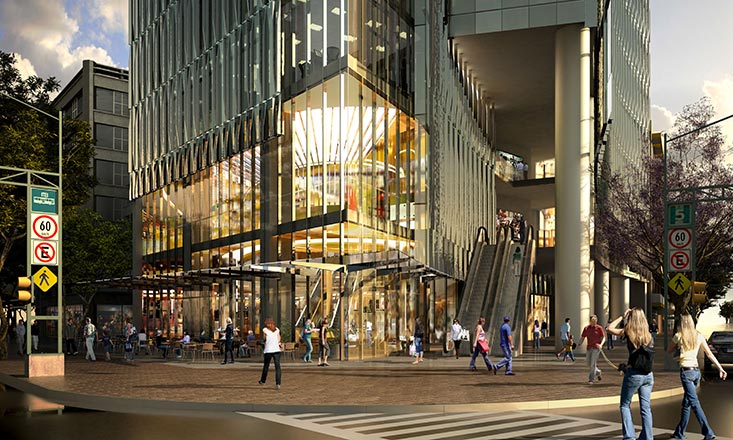 Edificio habitacional con componente comercial en esquina, desarrollado en 2 niveles. Con una superficie de terreno de 2,200 m2 y una superficie rentable de 20,000 m2
