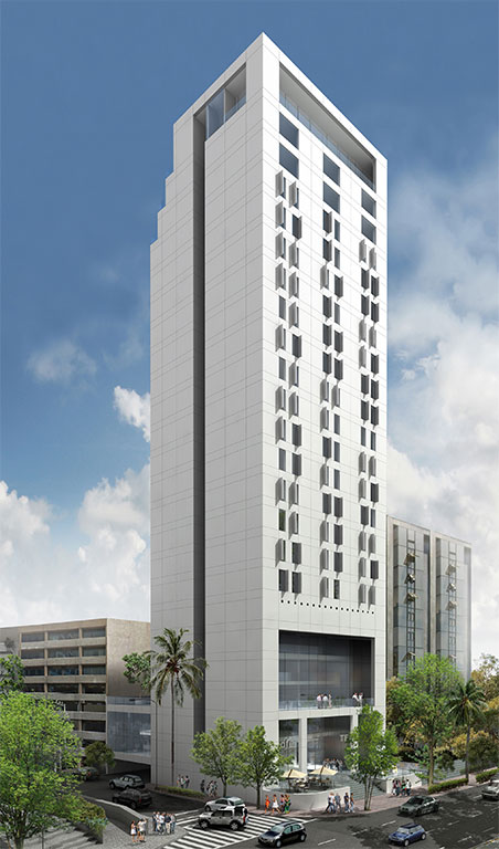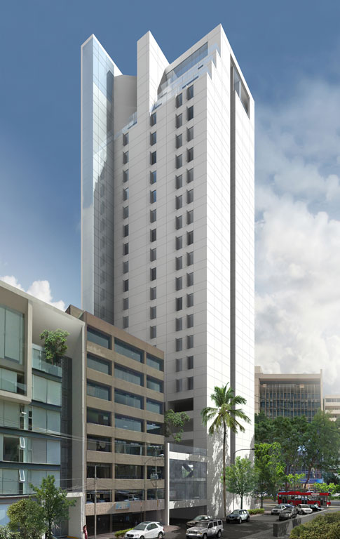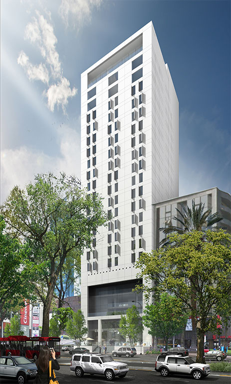 Edificio habitacional con componente comercial de 16 niveles con hotel de negocios. Con una superficie de terreno de 750 m2 y una superficie rentable de 11,000 m2